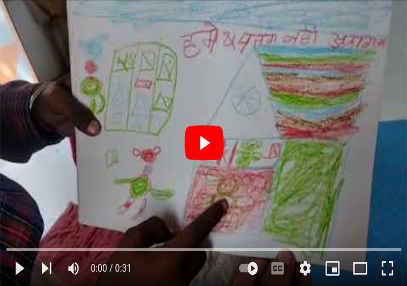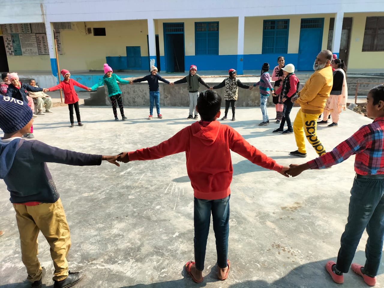 During the severest weeks of January and February 2022, Vijay Kumar of the Ceva Drama Repertory Company, Chandigarh, came to Chamaru for a whole month to do a theater workshop and then devise a street play with the children.