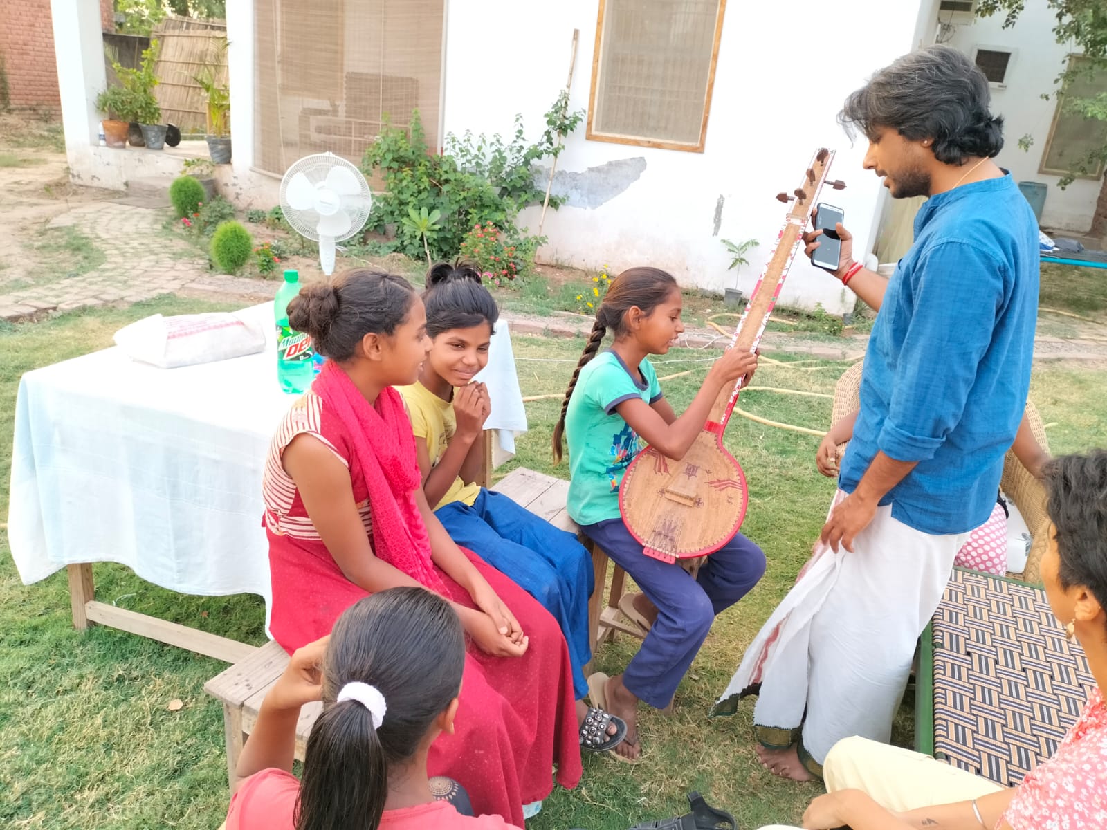 For a week in mid-June, 2022, Balakrishnan Raghavan, offered interactive sessions where he taught math and music to the children
